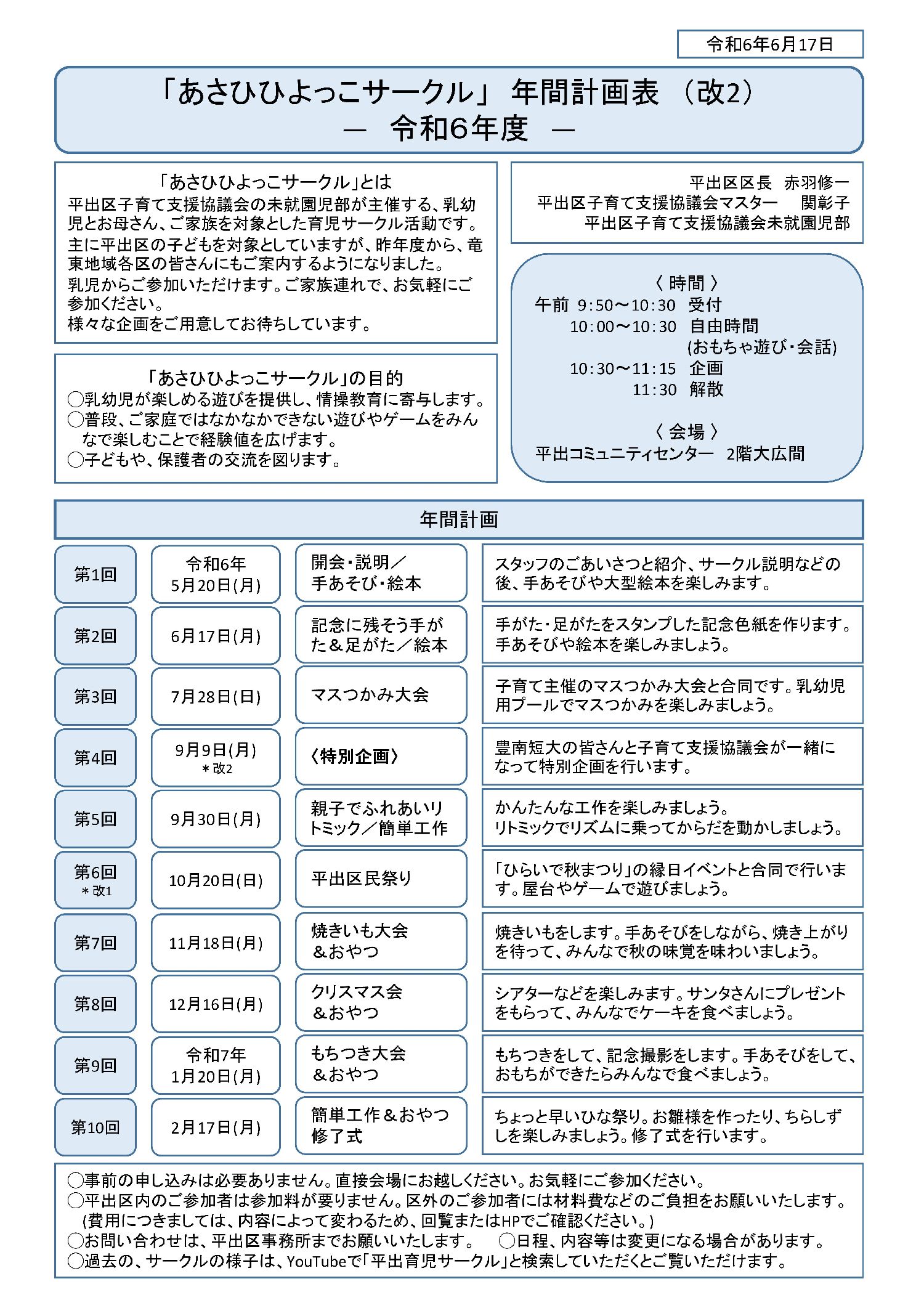 □昨年度からサークル名が「あさひひよっこサークル」にかわりました。