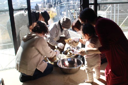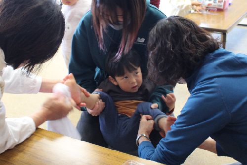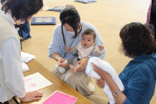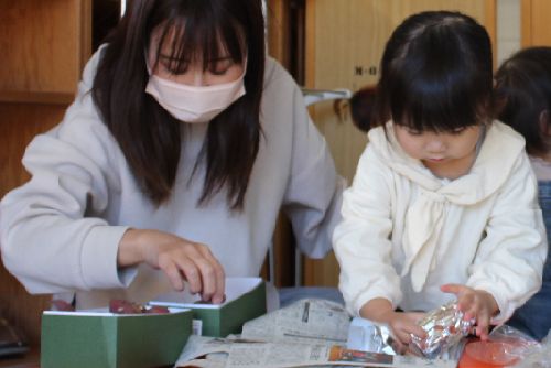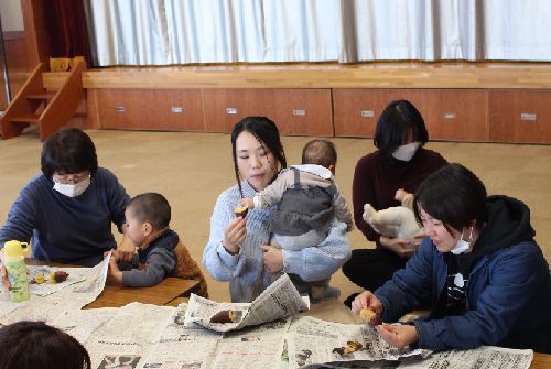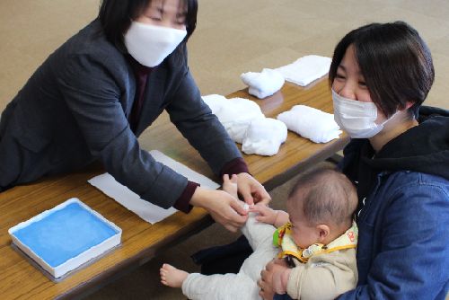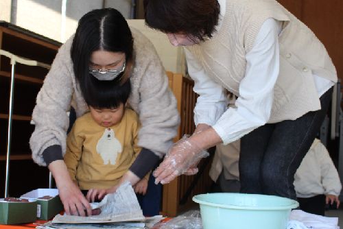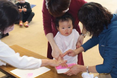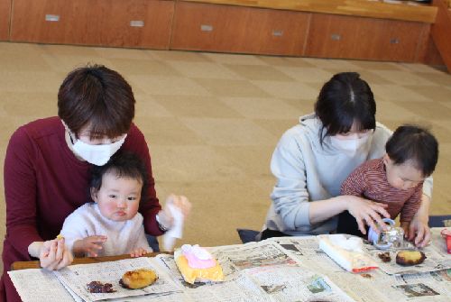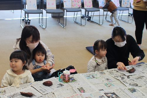 □いもを焼いているうちに、手がた・足がたを作りましょう。