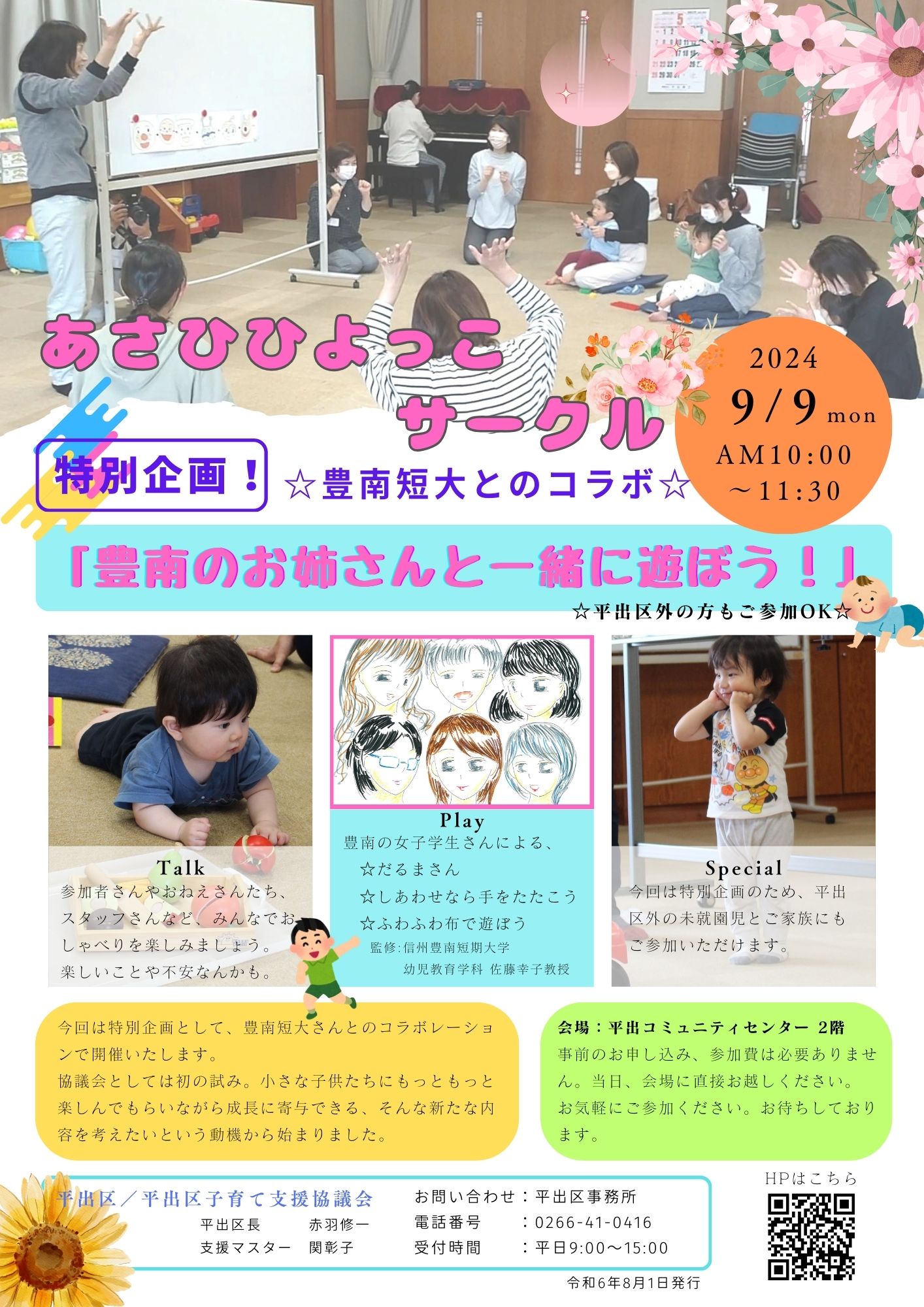□今回の「あさひひよっこサークル」は豊南短大さんとのコラボレー